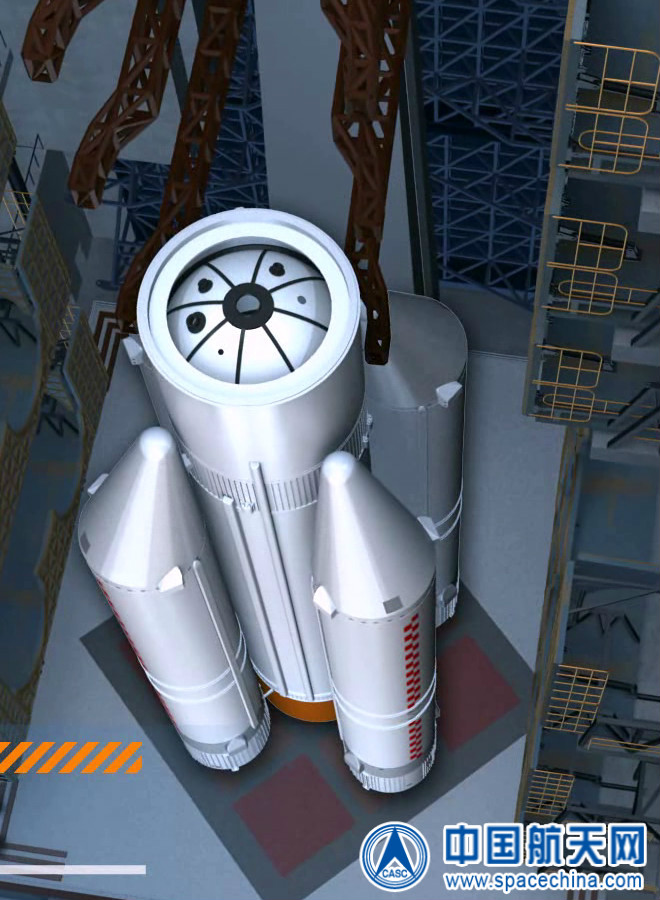 这是我国首次为垂直状态下的5米大直径火箭芯级更换发动机,从火箭在厂房中起竖到具体更换发动机的每一项操作,都必须小心翼翼,不影响火箭已总装部分的状态。